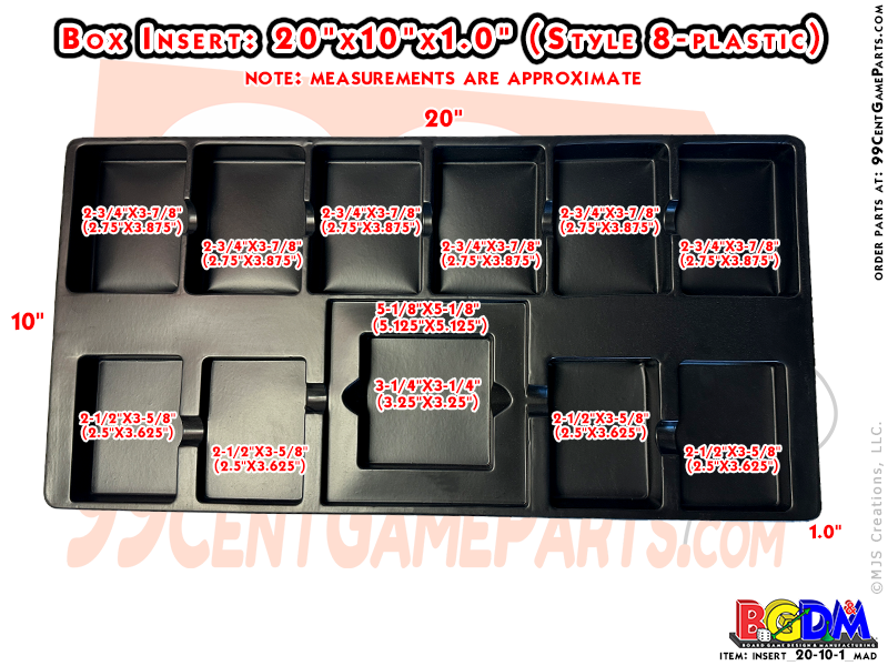 • Box Insert (#8) 20″ x 10″ x 1″ (plastic)
