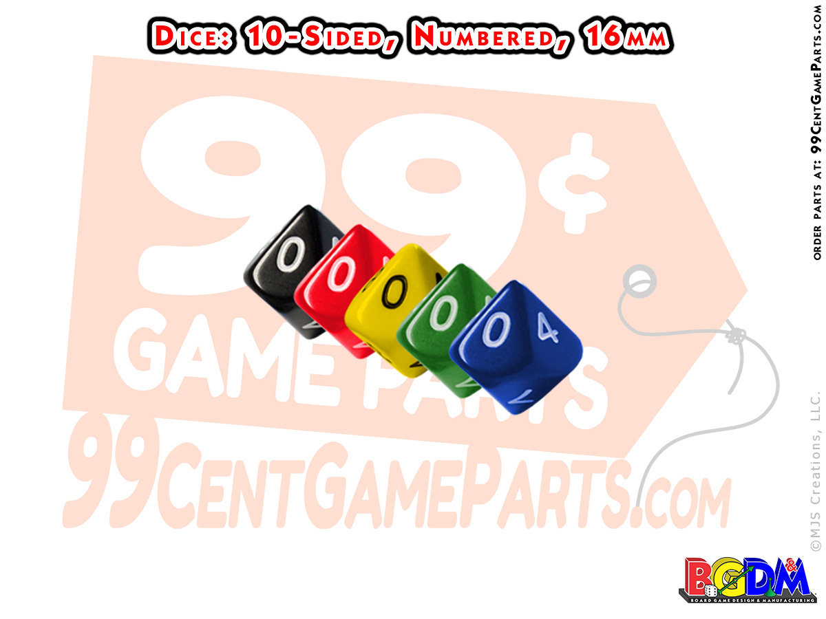 10-Sided Numbered Dice: DICE 16mm=5/8″, Ten-Sided, Numbered 0-9